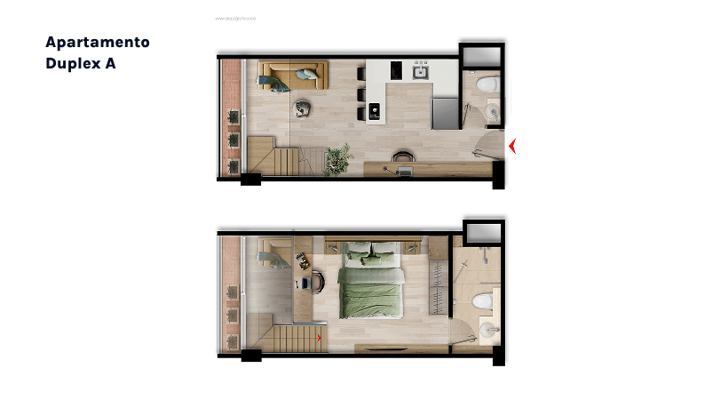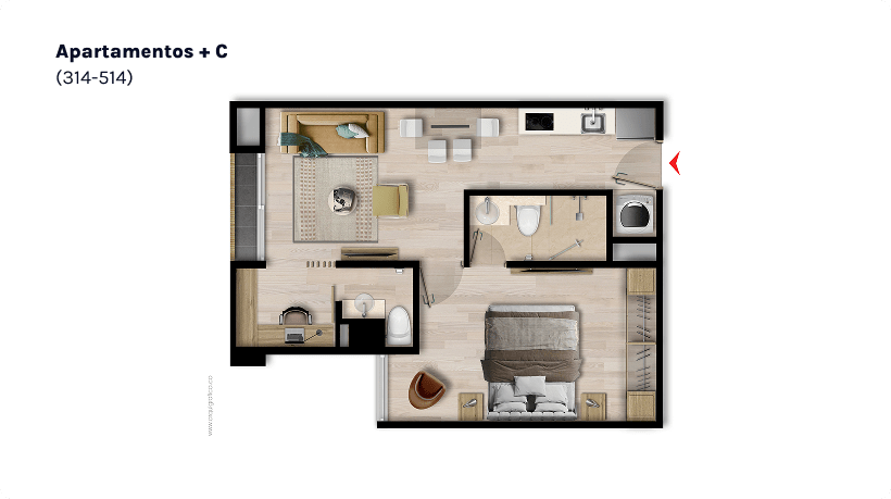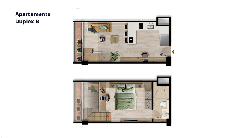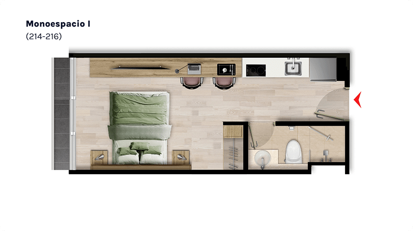 - Unidades de 1 hab + estudio o 2 hab, 1 o 2 baños.
